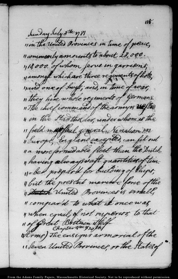 John Quincy Adams diary 4, 9 June 1781 - 27 August 1781, page 115