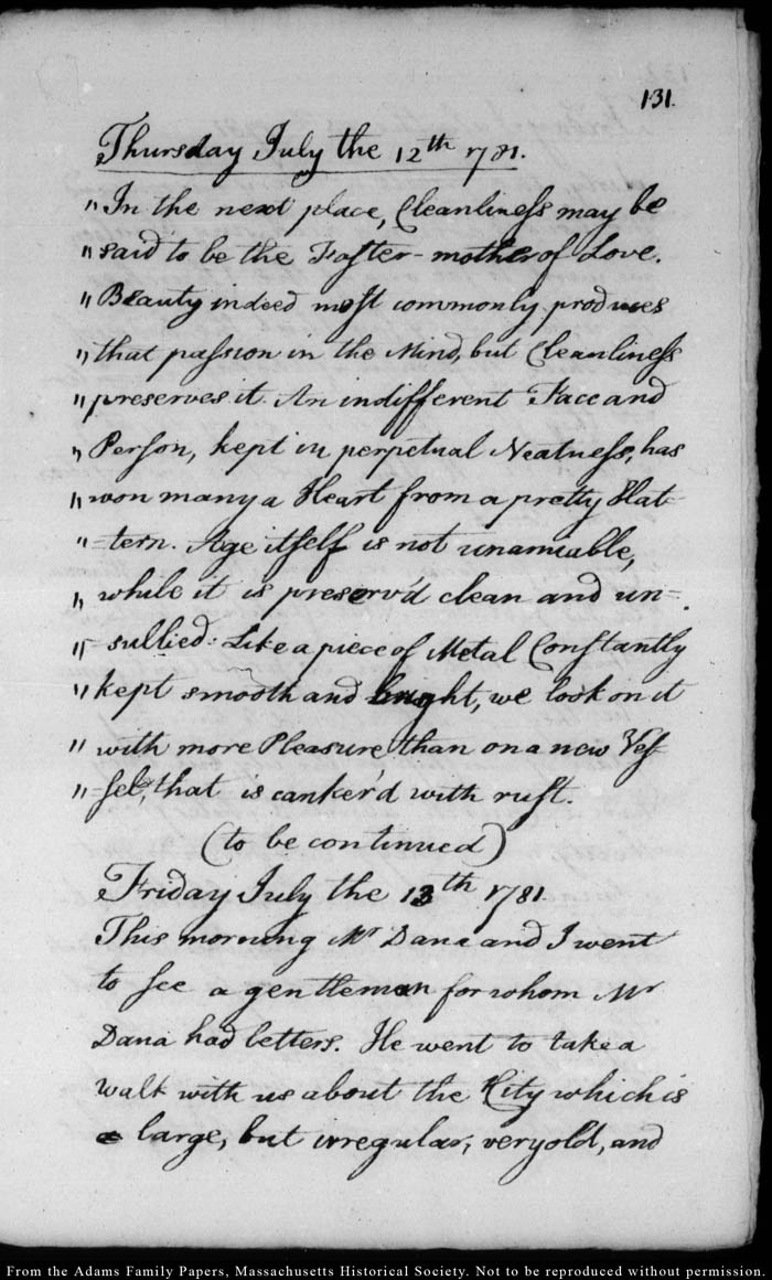 John Quincy Adams diary 4, 9 June 1781 - 27 August 1781, page 131