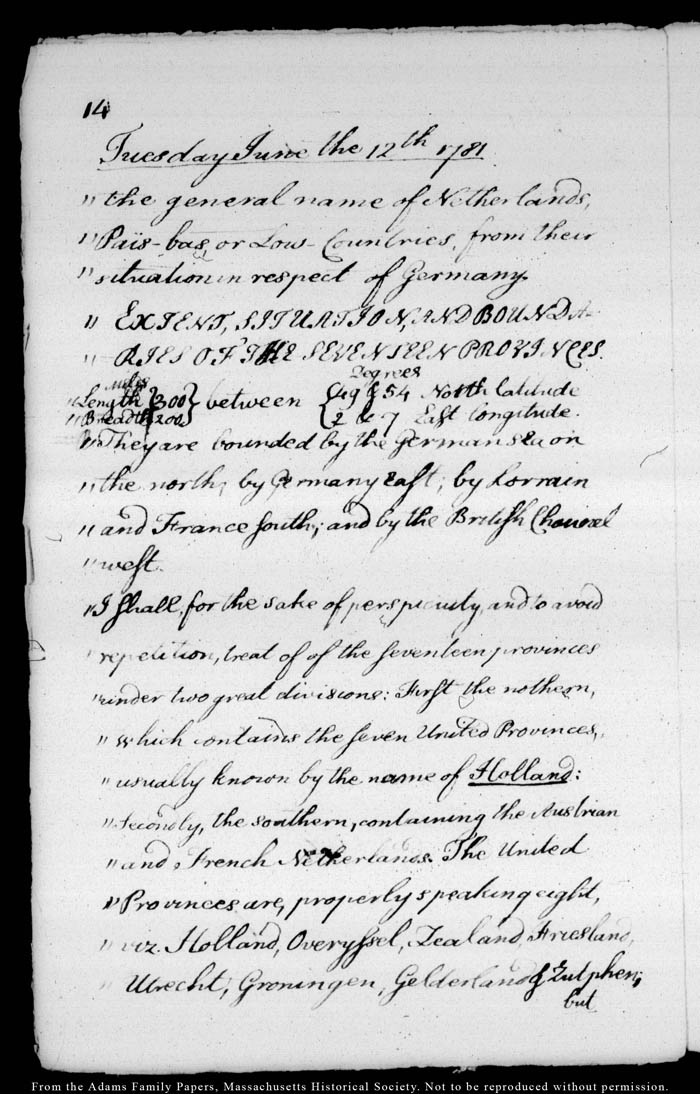 John Quincy Adams diary 4, 9 June 1781 - 27 August 1781, page 14