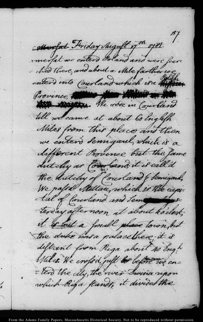 John Quincy Adams diary 4, 9 June 1781 - 27 August 1781, page 157