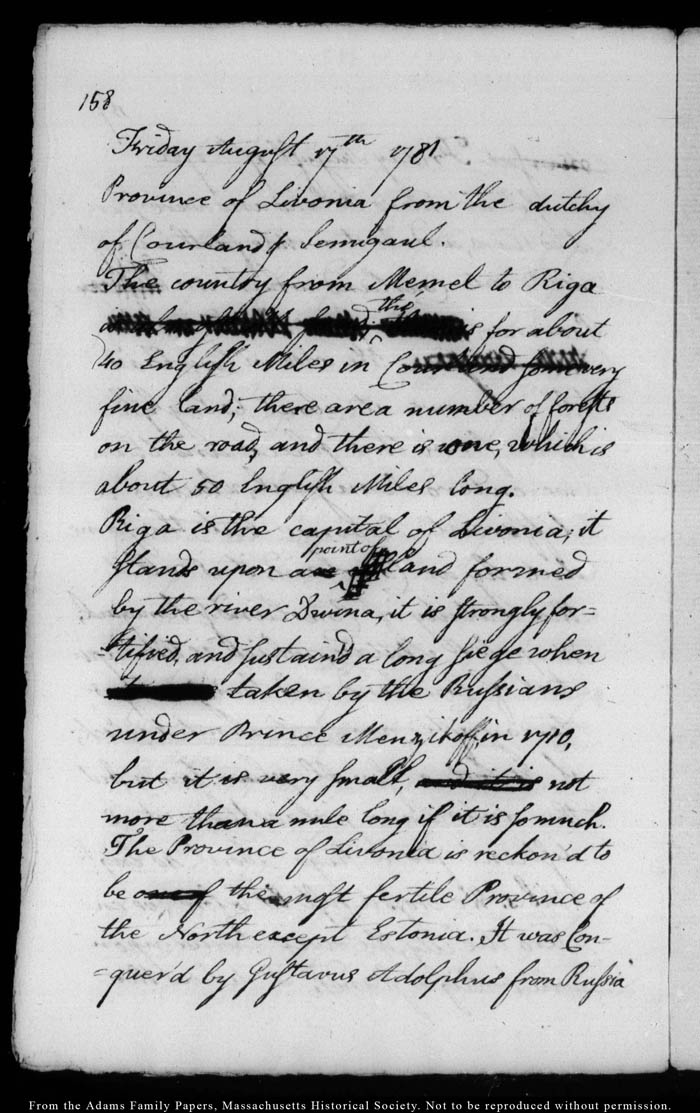 John Quincy Adams diary 4, 9 June 1781 - 27 August 1781, page 158