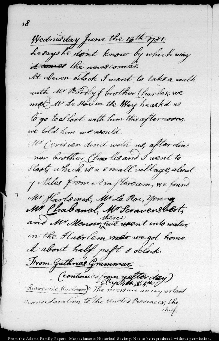 John Quincy Adams diary 4, 9 June 1781 - 27 August 1781, page 18