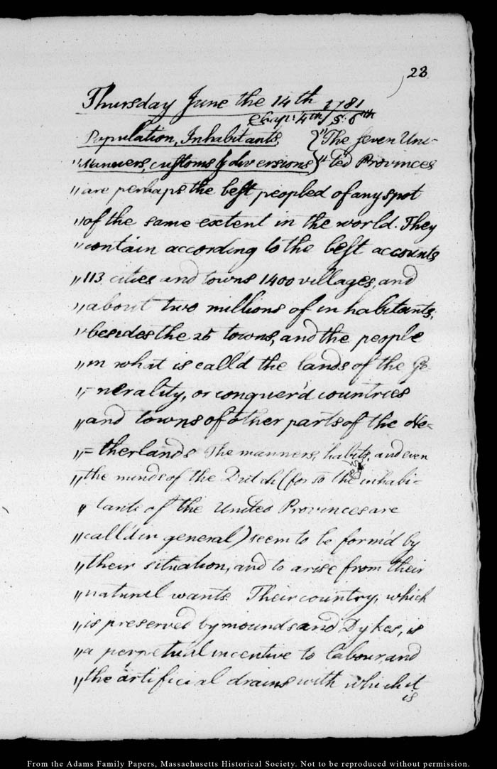 John Quincy Adams diary 4, 9 June 1781 - 27 August 1781, page 23