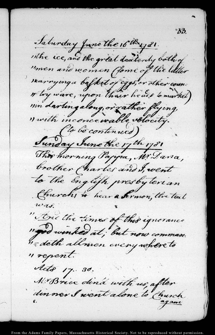 John Quincy Adams diary 4, 9 June 1781 - 27 August 1781, page 33