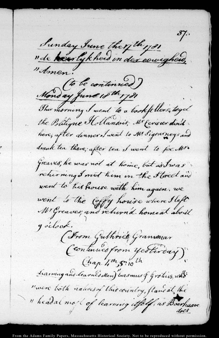 John Quincy Adams diary 4, 9 June 1781 - 27 August 1781, page 37
