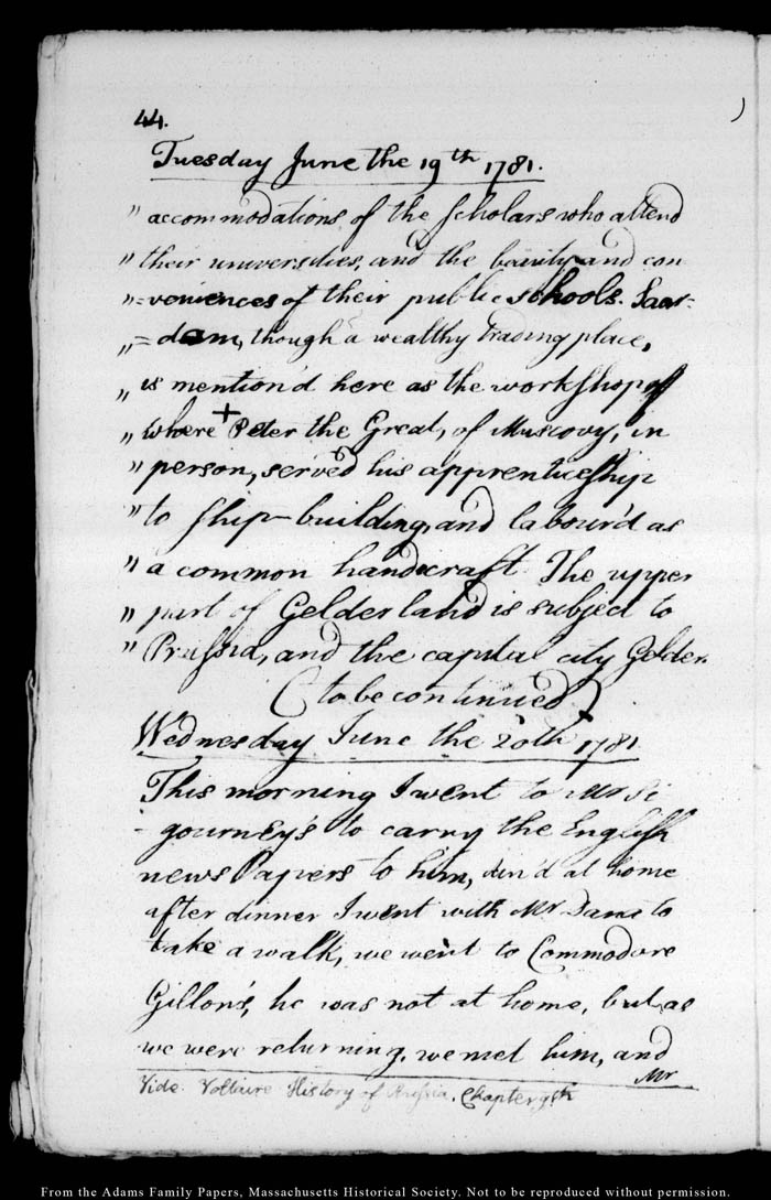 John Quincy Adams diary 4, 9 June 1781 - 27 August 1781, page 44