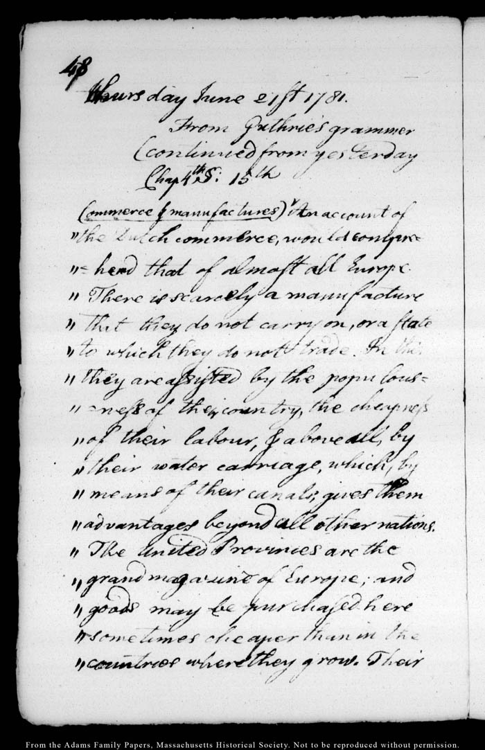 John Quincy Adams diary 4, 9 June 1781 - 27 August 1781, page 48