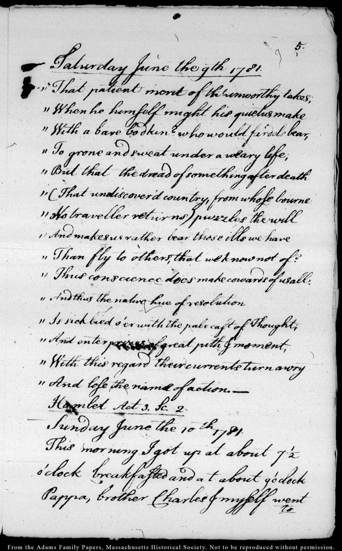 John Quincy Adams diary 4, 9 June 1781 - 27 August 1781, page 5