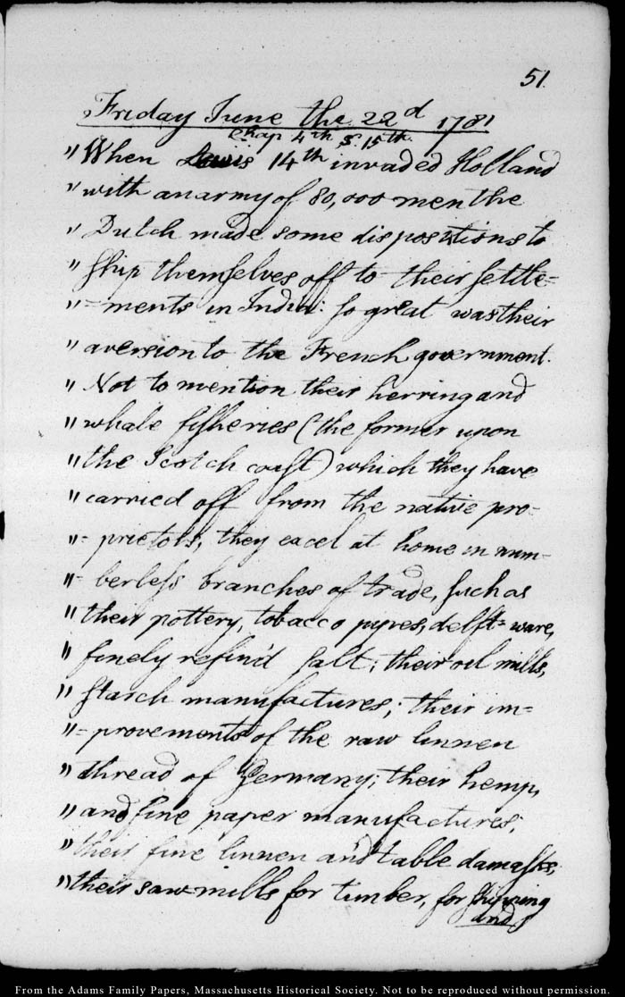 John Quincy Adams diary 4, 9 June 1781 - 27 August 1781, page 51