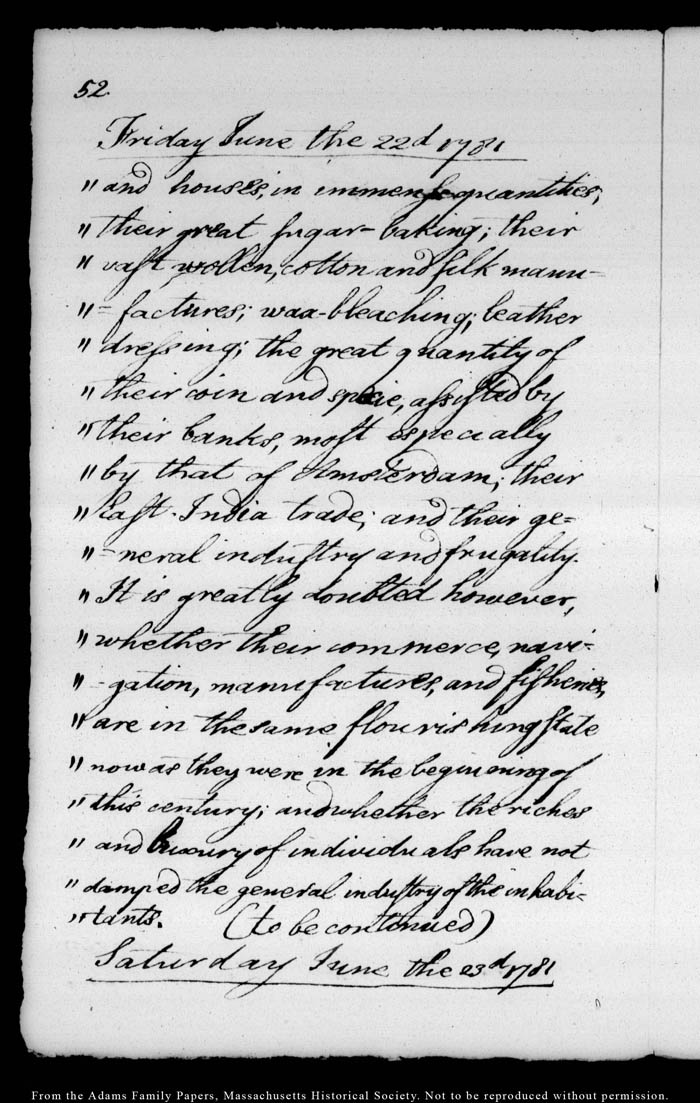 John Quincy Adams diary 4, 9 June 1781 - 27 August 1781, page 52
