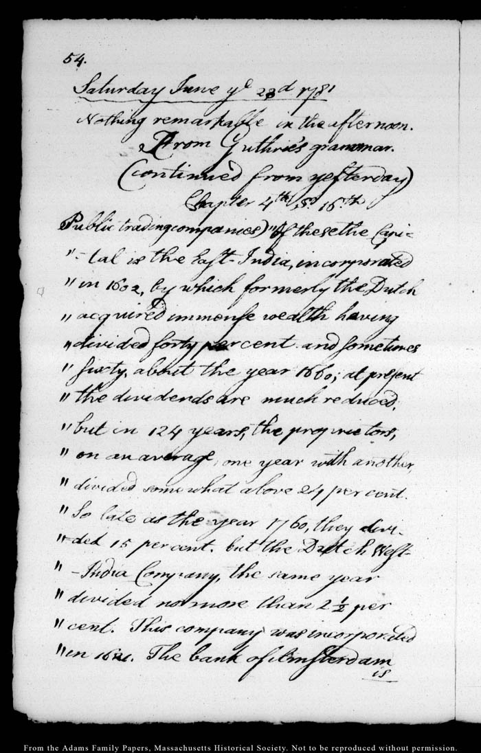 John Quincy Adams diary 4, 9 June 1781 - 27 August 1781, page 54