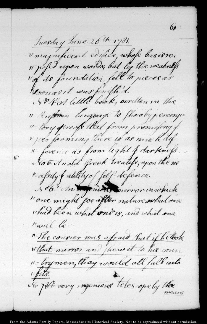 John Quincy Adams diary 4, 9 June 1781 - 27 August 1781, page 61