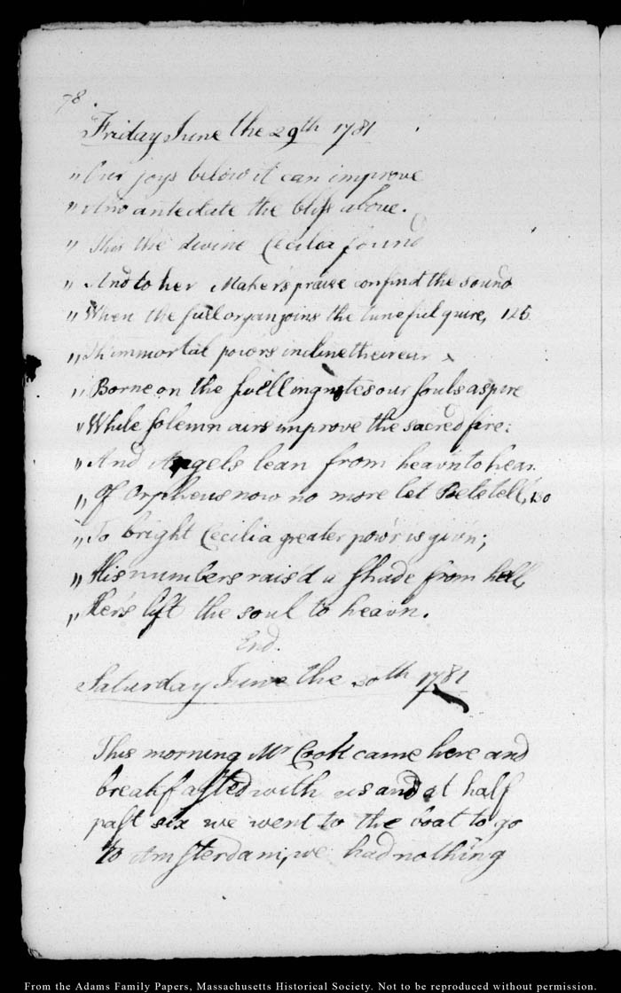 John Quincy Adams diary 4, 9 June 1781 - 27 August 1781, page 78