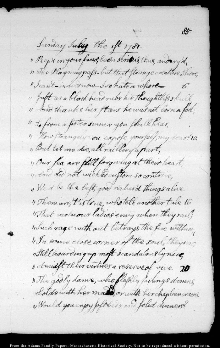 John Quincy Adams diary 4, 9 June 1781 - 27 August 1781, page 85