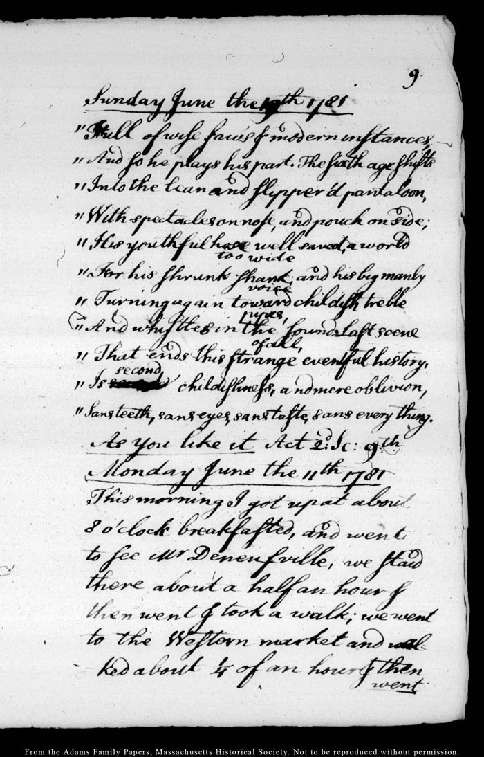 John Quincy Adams diary 4, 9 June 1781 - 27 August 1781, page 9