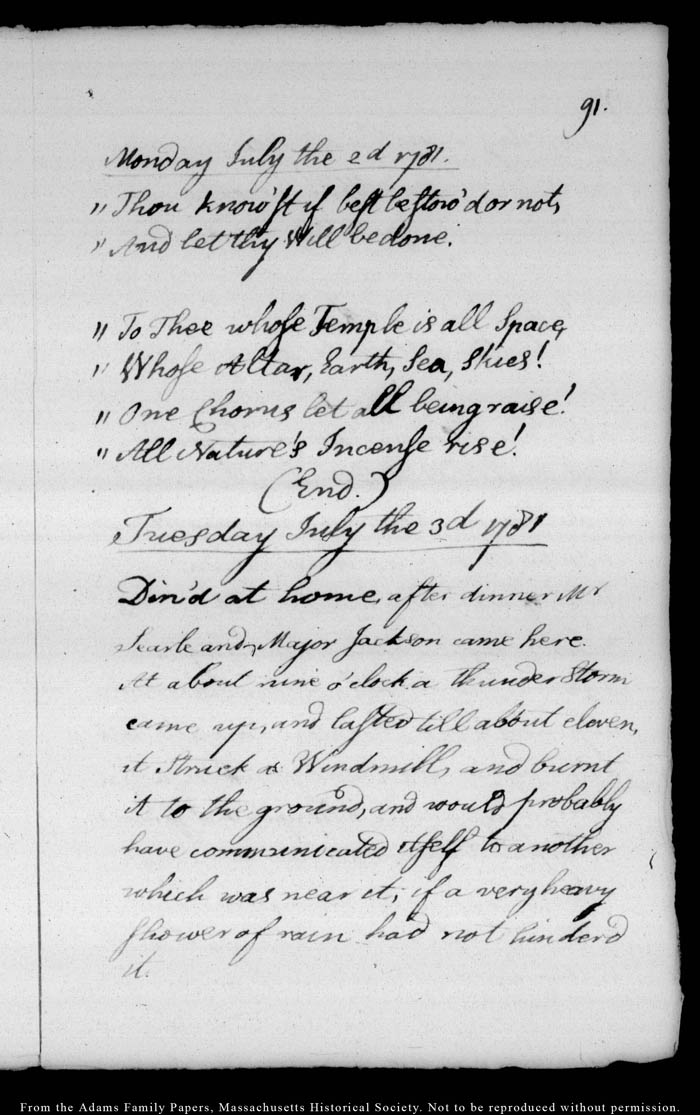 John Quincy Adams diary 4, 9 June 1781 - 27 August 1781, page 91