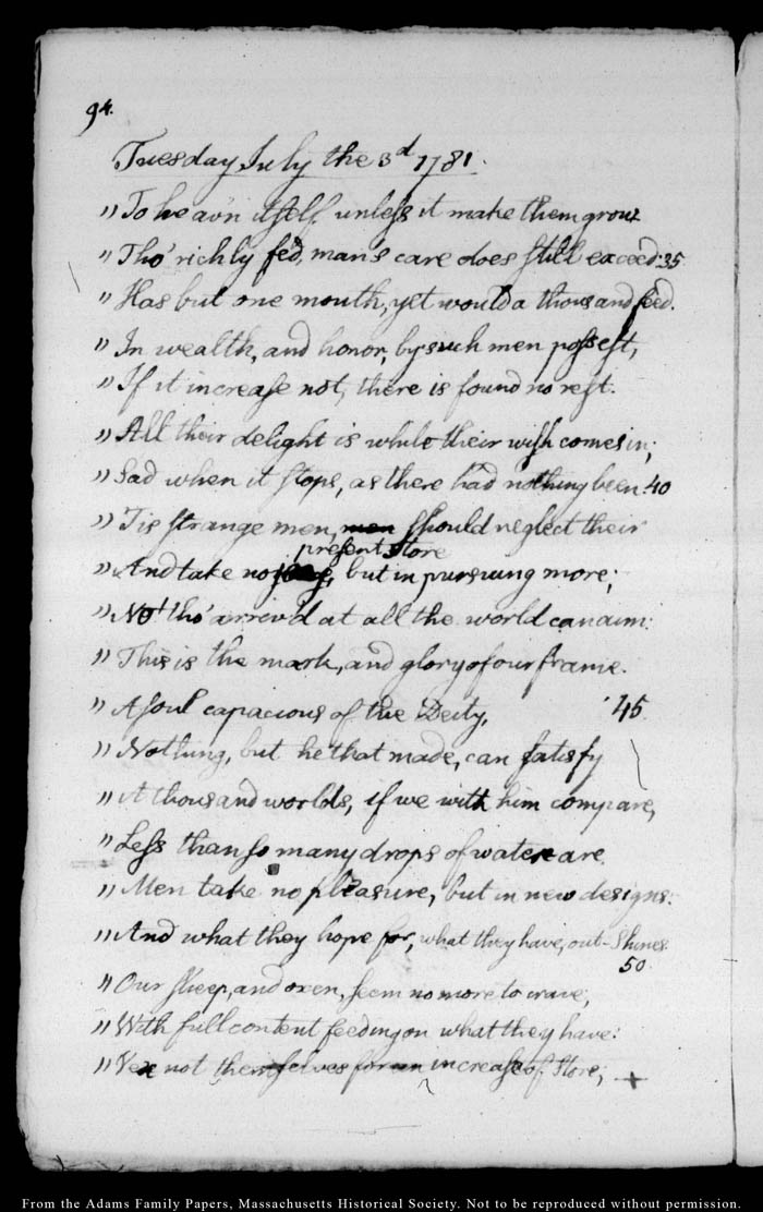 John Quincy Adams diary 4, 9 June 1781 - 27 August 1781, page 94