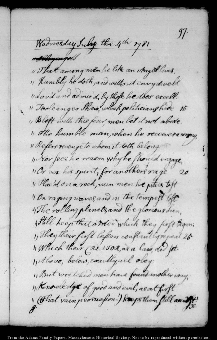 John Quincy Adams diary 4, 9 June 1781 - 27 August 1781, page 97