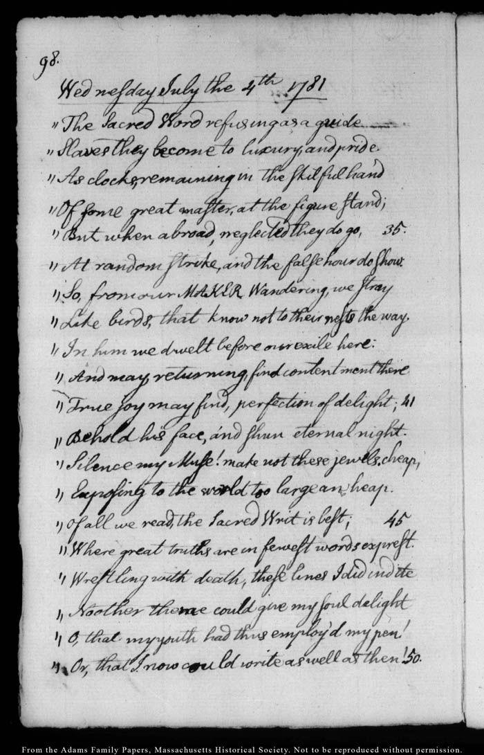 John Quincy Adams diary 4, 9 June 1781 - 27 August 1781, page 98