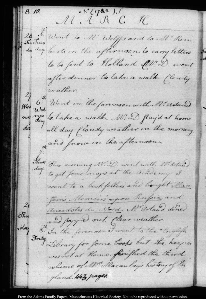 John Quincy Adams diary 5, 27 January 1782 - 23 November 1782, page 10