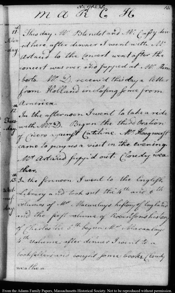 John Quincy Adams diary 5, 27 January 1782 - 23 November 1782, page 13