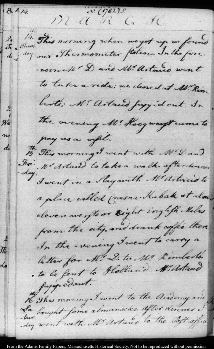 John Quincy Adams diary 5, 27 January 1782 - 23 November 1782, page 14