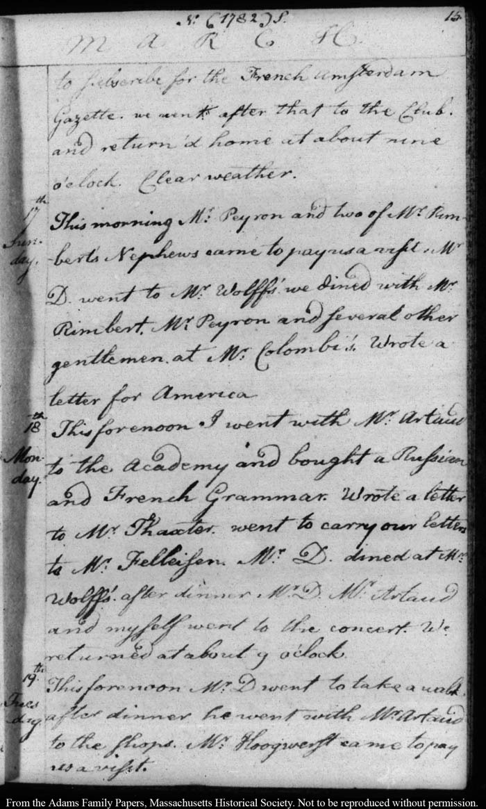 John Quincy Adams diary 5, 27 January 1782 - 23 November 1782, page 15