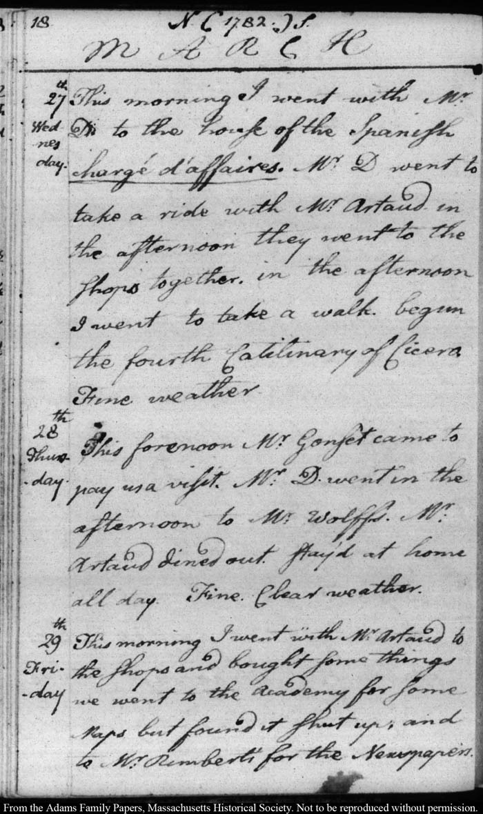 John Quincy Adams diary 5, 27 January 1782 - 23 November 1782, page 18
