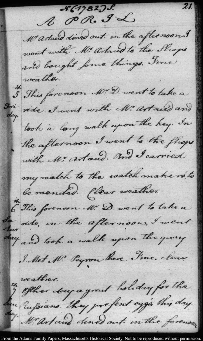 John Quincy Adams diary 5, 27 January 1782 - 23 November 1782, page 21