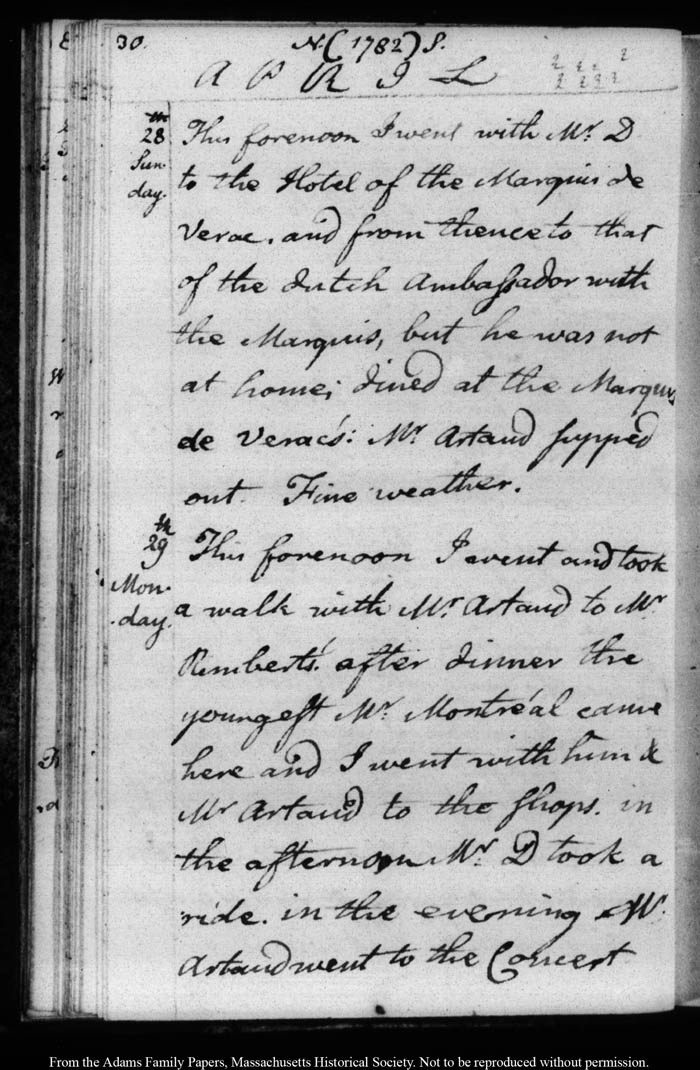 John Quincy Adams diary 5, 27 January 1782 - 23 November 1782, page 30