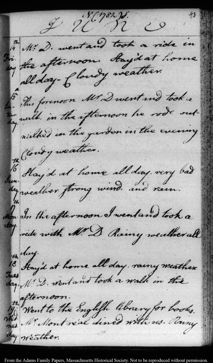 John Quincy Adams diary 5, 27 January 1782 - 23 November 1782, page 43