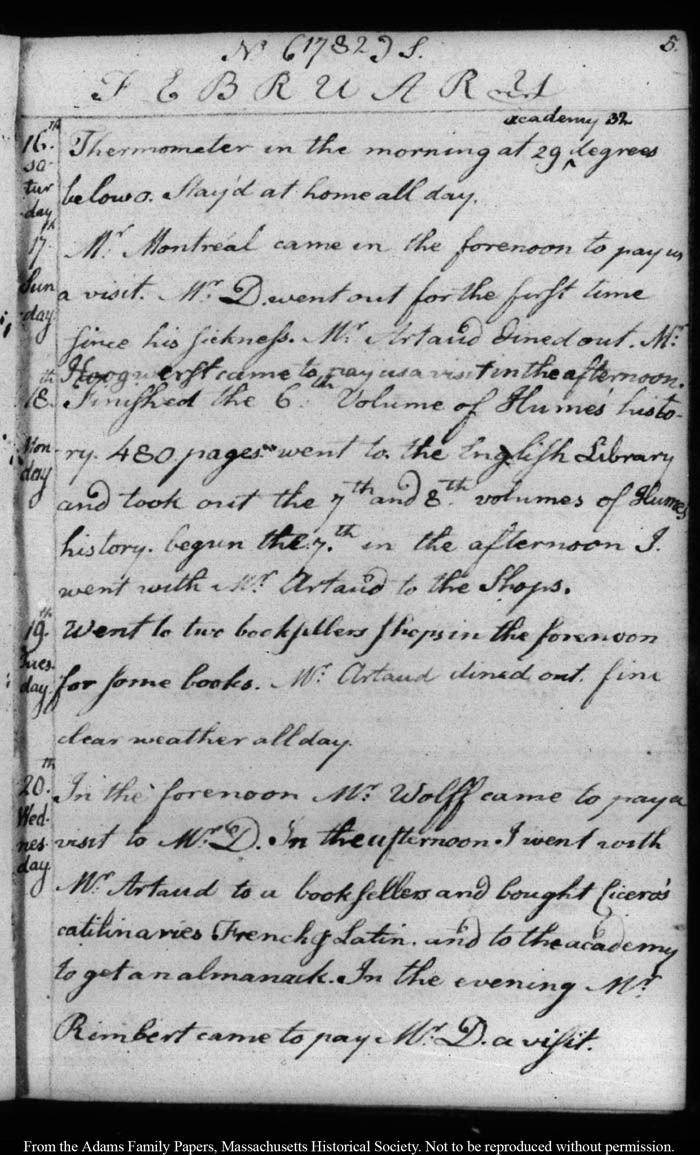 John Quincy Adams diary 5, 27 January 1782 - 23 November 1782, page 5