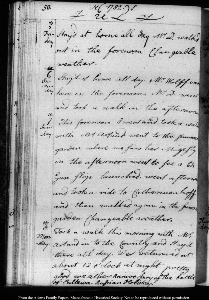 John Quincy Adams diary 5, 27 January 1782 - 23 November 1782, page 50