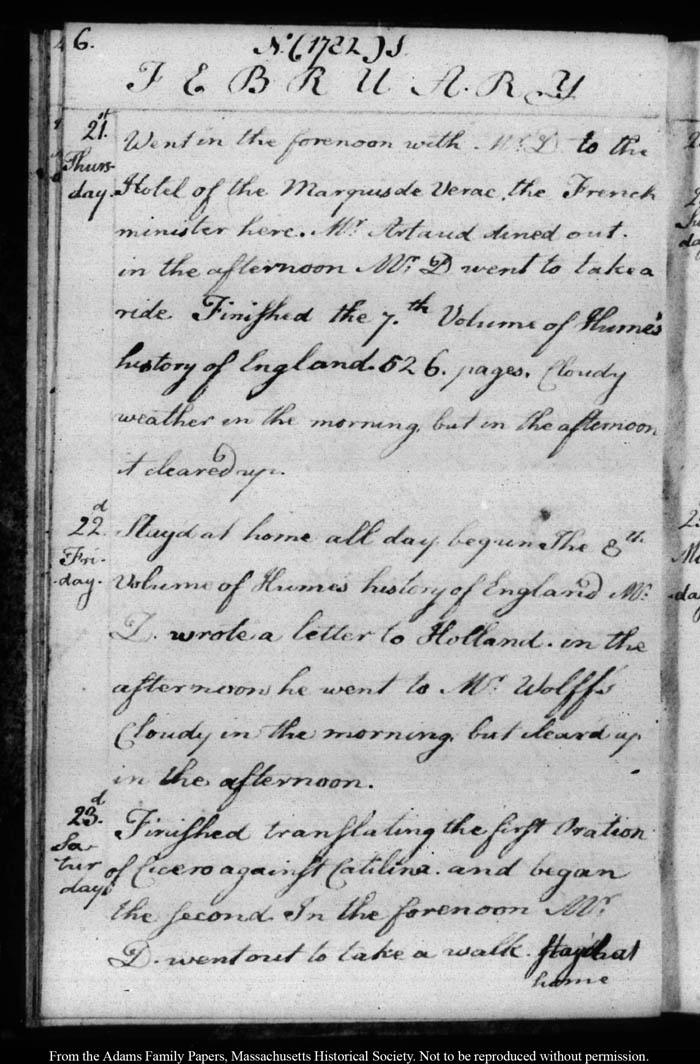 John Quincy Adams diary 5, 27 January 1782 - 23 November 1782, page 6