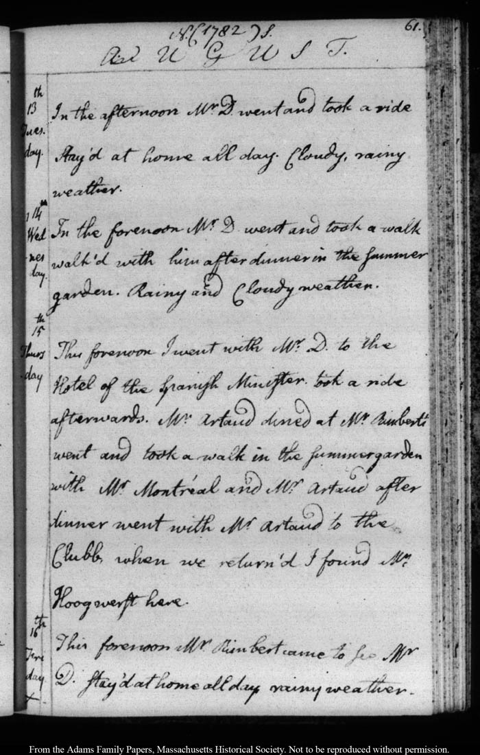 John Quincy Adams diary 5, 27 January 1782 - 23 November 1782, page 61