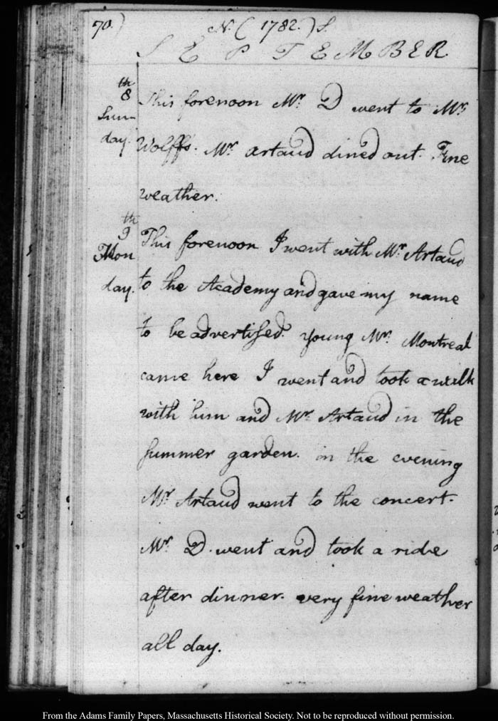 John Quincy Adams diary 5, 27 January 1782 - 23 November 1782, page 70