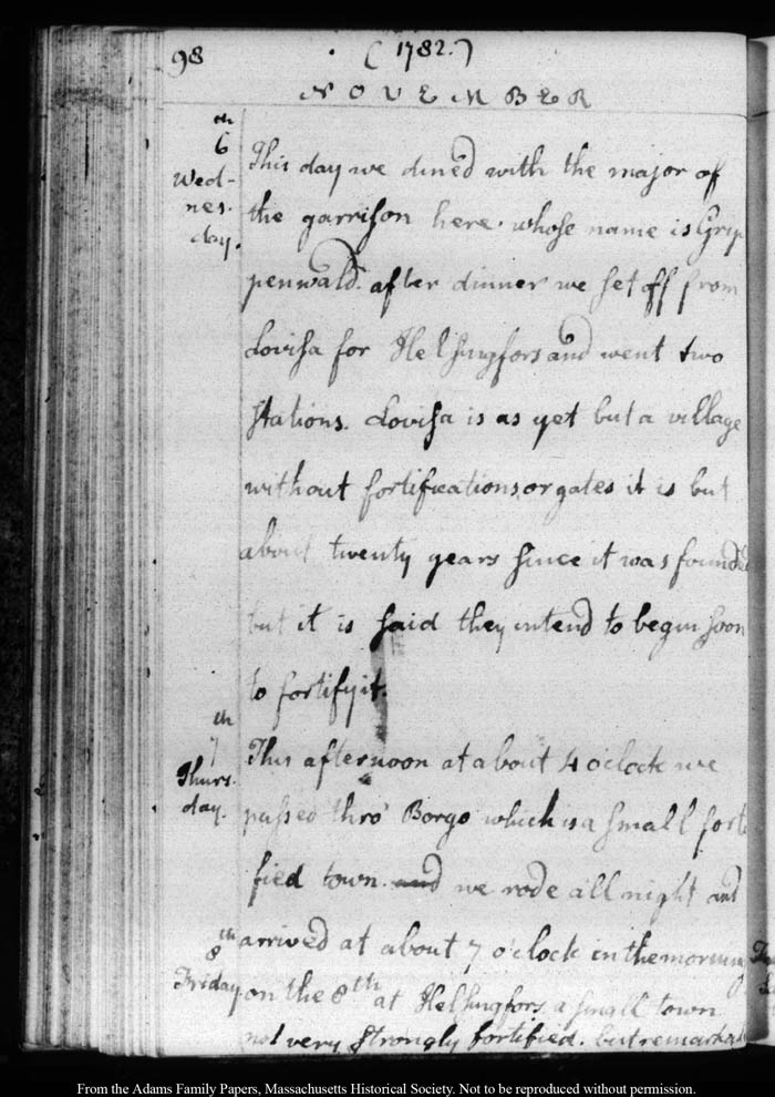 John Quincy Adams diary 5, 27 January 1782 - 23 November 1782, page 98