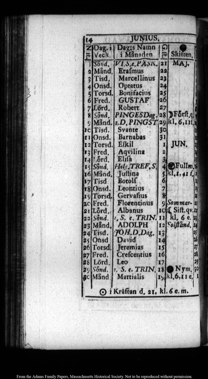 John Quincy Adams diary 7 (almanac), 31 December 1782 - 17 October 1783, page 110