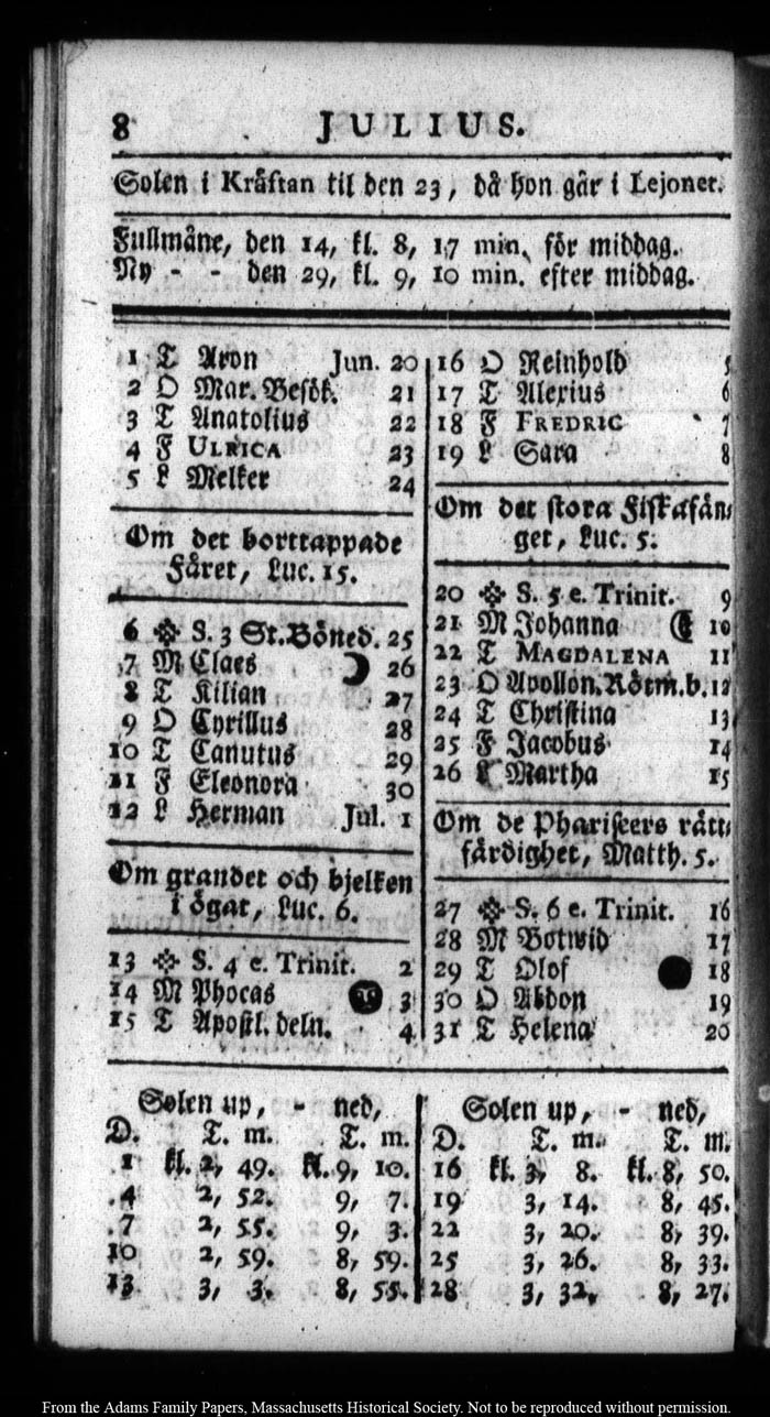 John Quincy Adams diary 7 (almanac), 31 December 1782 - 17 October 1783, page 14