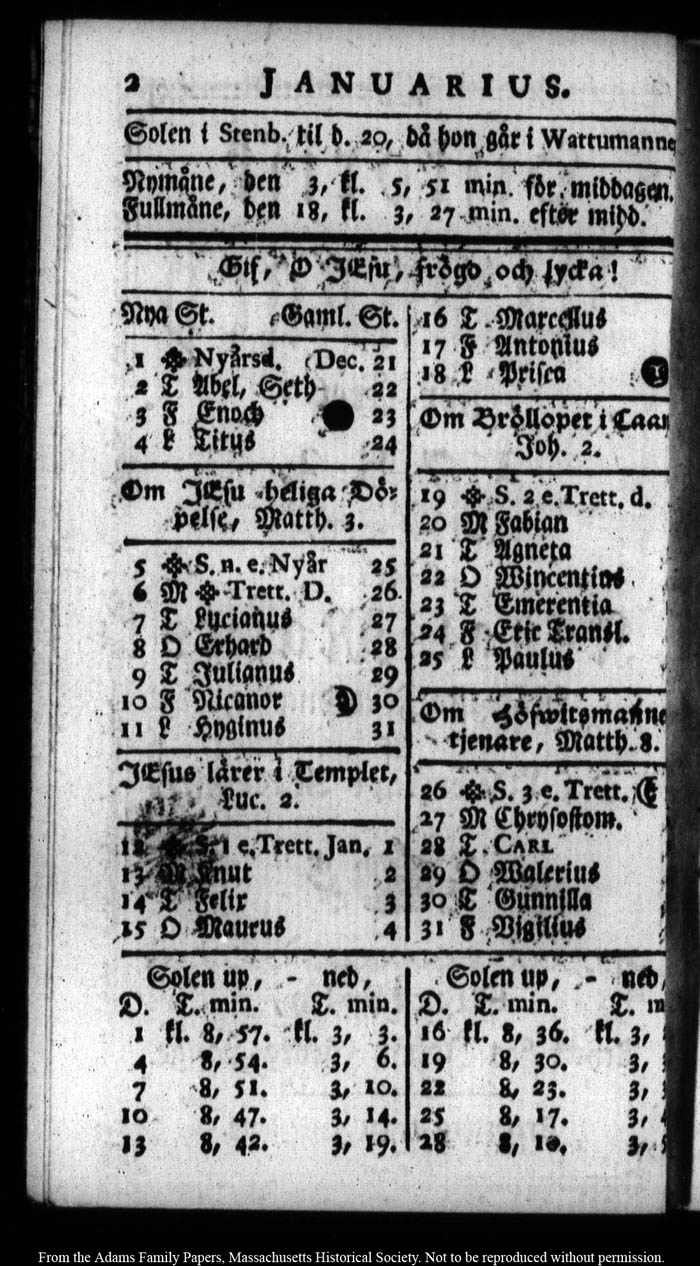 John Quincy Adams diary 7 (almanac), 31 December 1782 - 17 October 1783, page 2