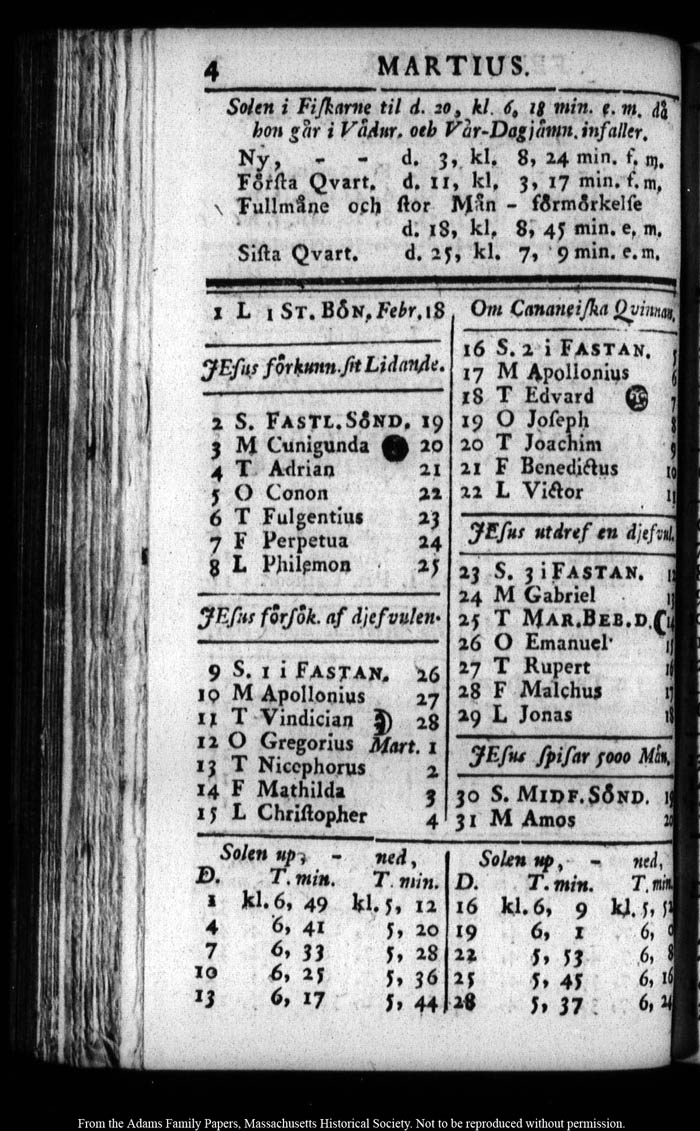 John Quincy Adams diary 7 (almanac), 31 December 1782 - 17 October 1783, page 256
