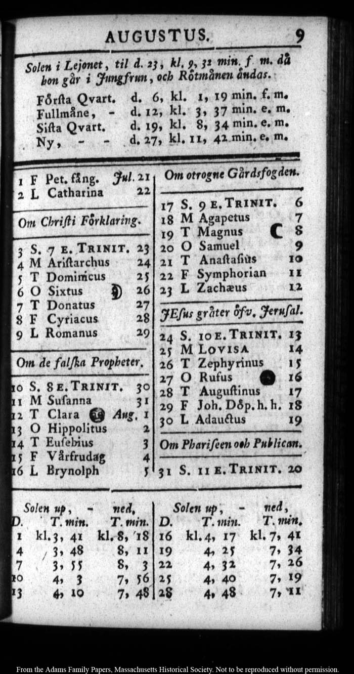 John Quincy Adams diary 7 (almanac), 31 December 1782 - 17 October 1783, page 261