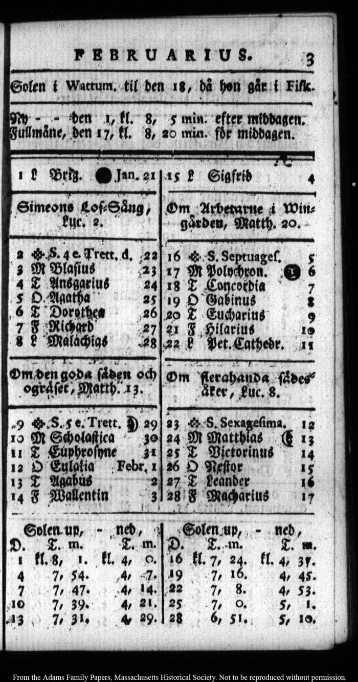 John Quincy Adams diary 7 (almanac), 31 December 1782 - 17 October 1783, page 5