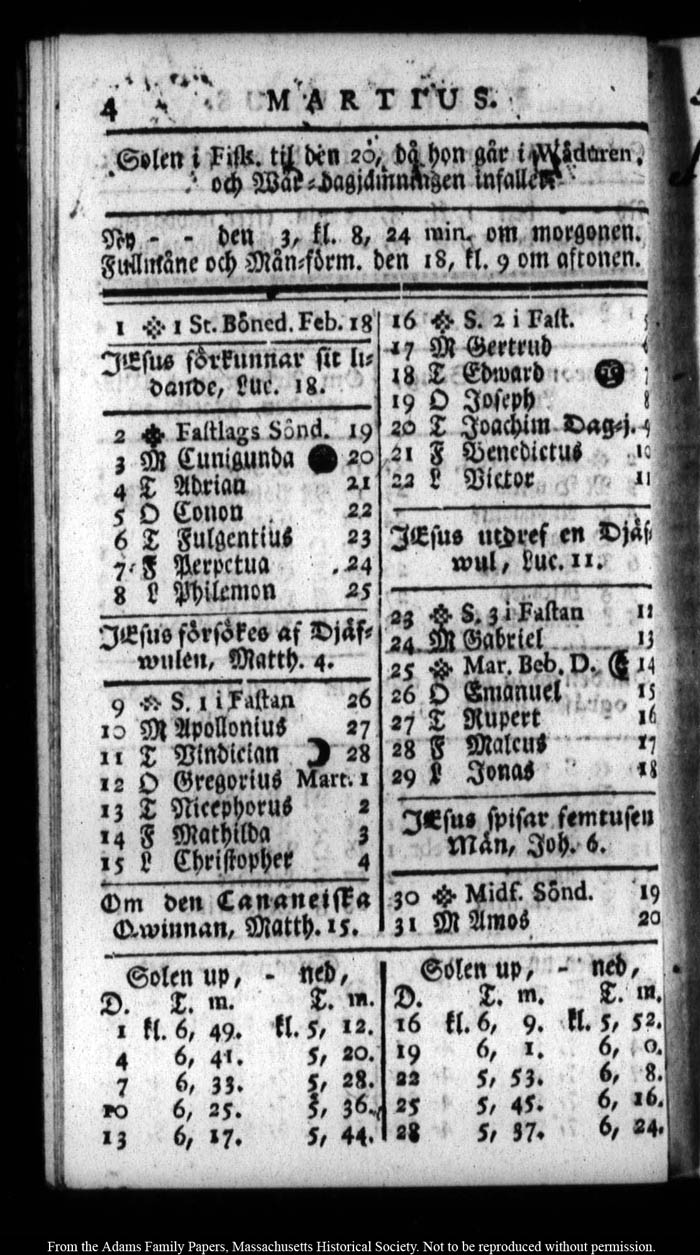 John Quincy Adams diary 7 (almanac), 31 December 1782 - 17 October 1783, page 6