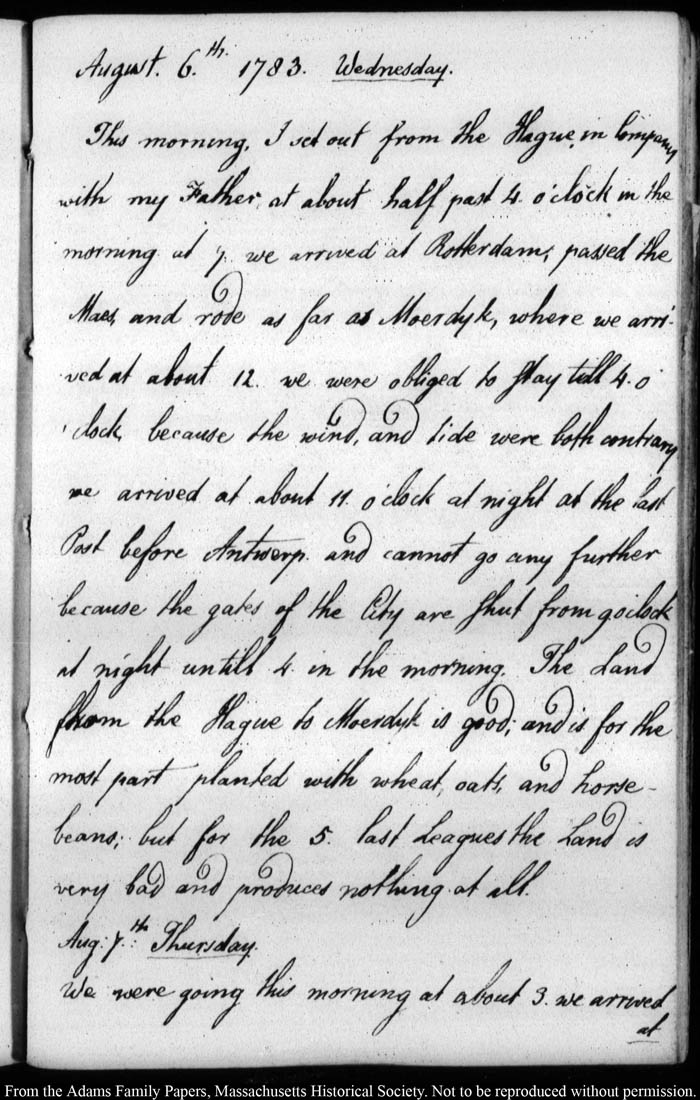 John Quincy Adams diary 8, 6 August 1783 - 22 September 1783 (with gaps), page 1