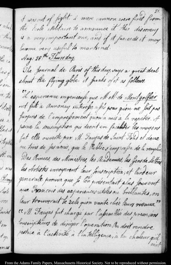 John Quincy Adams diary 8, 6 August 1783 - 22 September 1783 (with gaps), page 21
