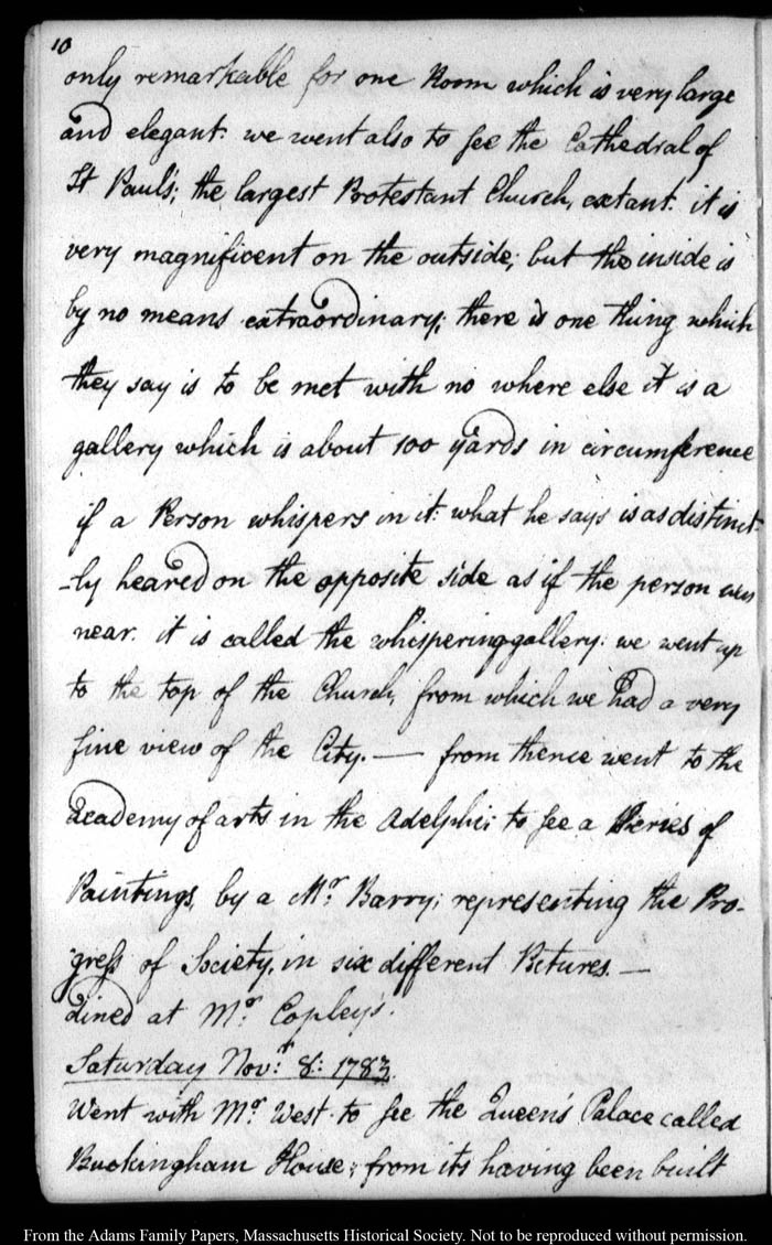 John Quincy Adams diary 9, 20 October 1783 - 6 December 1783, 8 August 1784 - 13 October 1784, 20 March 1785, page 10