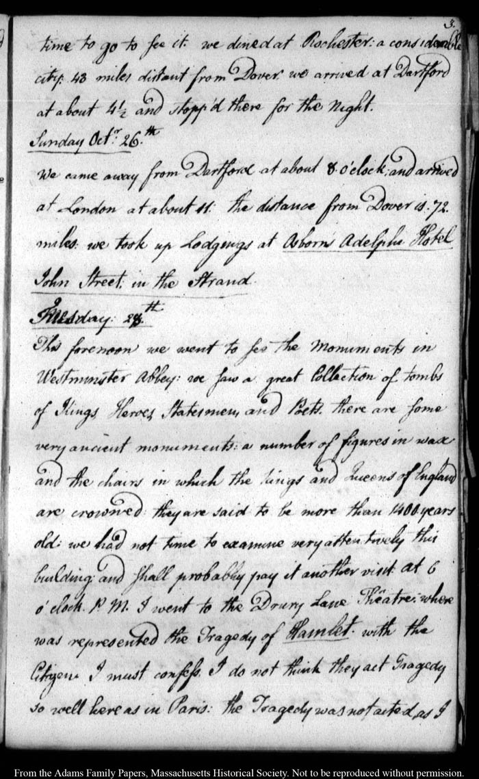 John Quincy Adams diary 9, 20 October 1783 - 6 December 1783, 8 August 1784 - 13 October 1784, 20 March 1785, page 3