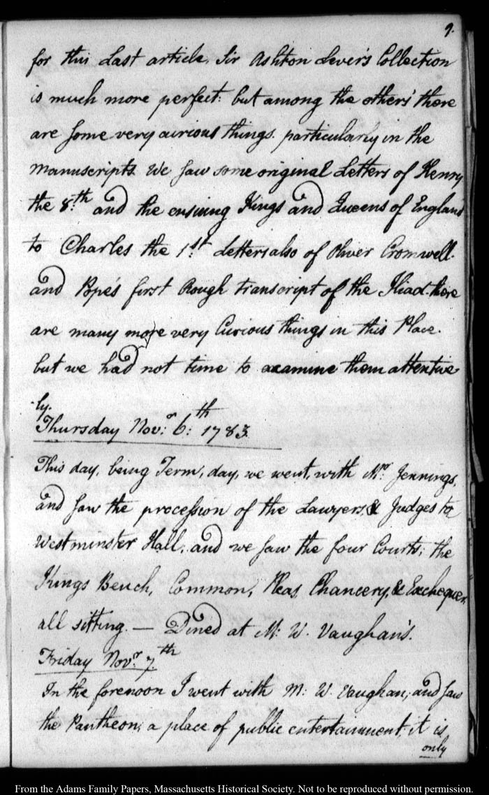 John Quincy Adams diary 9, 20 October 1783 - 6 December 1783, 8 August 1784 - 13 October 1784, 20 March 1785, page 9