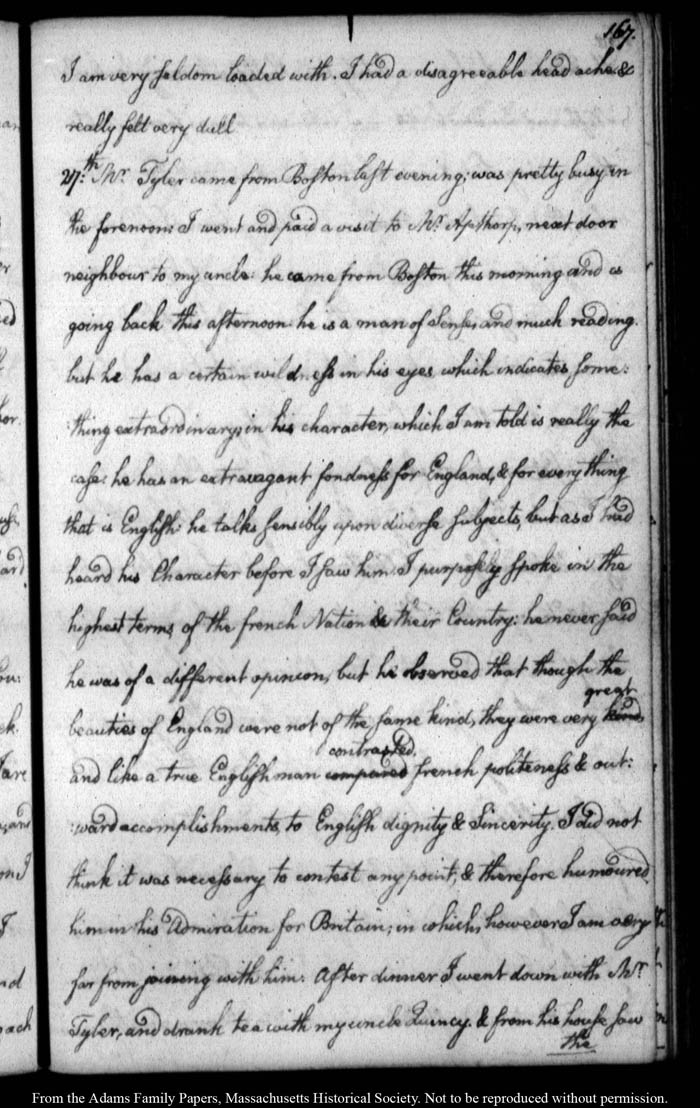 John Quincy Adams diary 10, 1 January 1785 - 30 June 1786, page 167